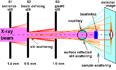low-Q limit for SAXS / ASAXS no direct use in vacuum surface reflection of slit scattering |