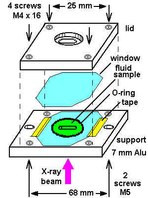 large cell housing (60x80 mm) windows have to replaced daily at high flux synchrotron (10e13 ph/s at sample) and low energy (< 8 keV) |